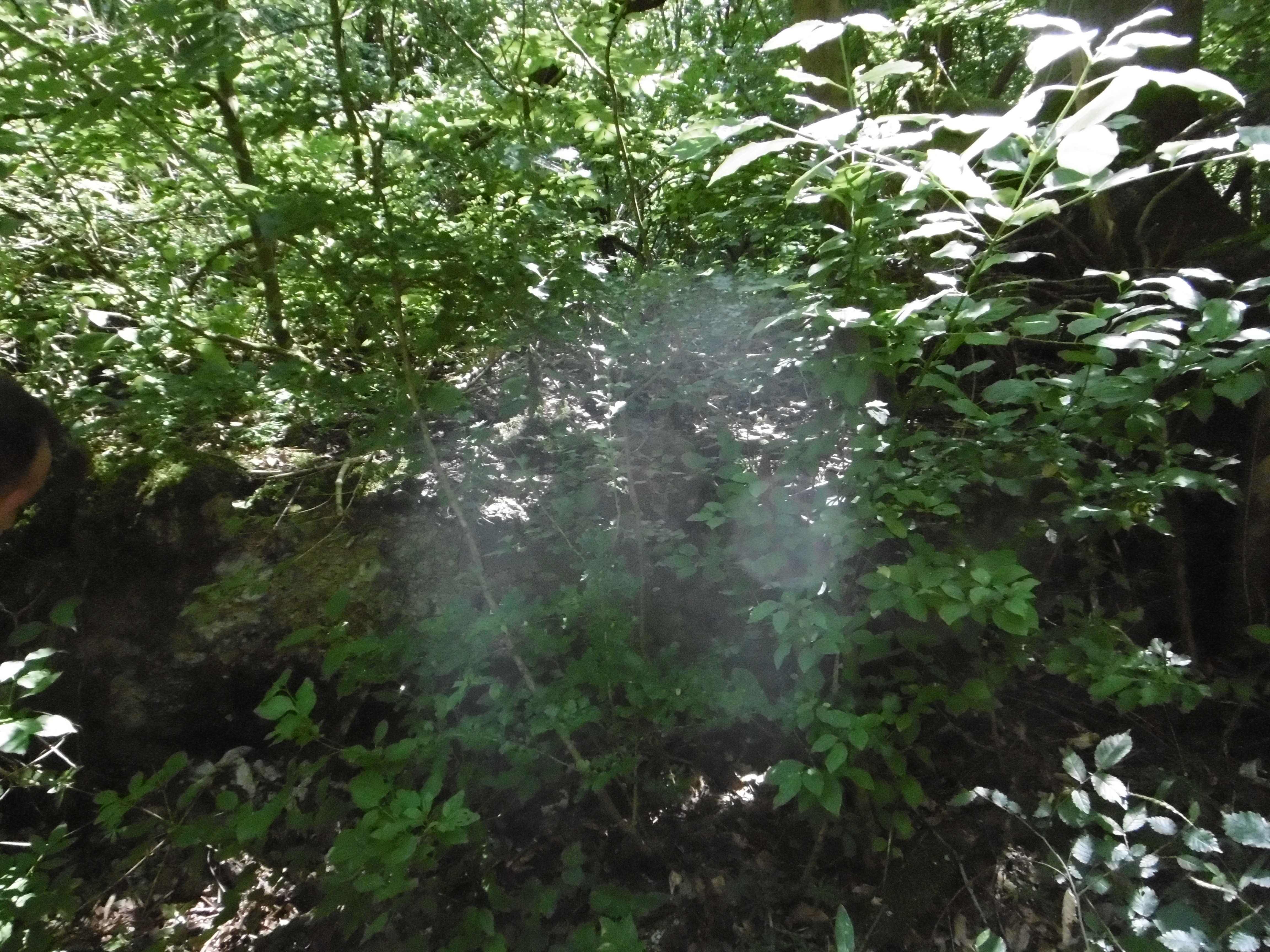 Nachtrag zur Waldbegehung. Während der Auswertung wurden wir auf mehrere Bilder aufmerksam, die für uns interessant waren. Merkwürdige Nebelbilder. Auf einem sind im Nebel drei Orbs (kreisrunde Kugeln) leicht zu sehen. Diese Bilder wurden nicht nacheinander gemacht. Dazwischen sind mehrere völlig unauffällige Bilder. Eine verschmutztes Objektiv kann auch ausgeschlossen werden. Es wurde nicht geraucht und auch ein Blenden der Sonne kann ausgeschlossen werden, da die Bilder in unterschiedlichen Himmelsrichtungen gemacht wurden. Eine erhöhte Luftfeuchtigkeit kann ebenfalls ausgeschlossen werden. Wir hatten zu diesem Zeitpunkt eine Außentemperatur von knapp über 30 Grad.